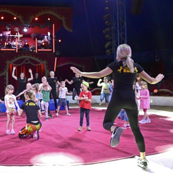 Около 60 сотрудников со всего мира приглашают вас на Арену на Дунае в Вене до 20 июня. В июле традиционно не бывает спектаклей, но на этот раз дети в возрасте от пяти до пятнадцати лет могут сделать свои первые шаги в акробатике или комедии под руководством профессионалов. С понедельника по четверг занятия со специальными педагогами, в пятницу небольшое представление в оригинальном шатре перед публикой.