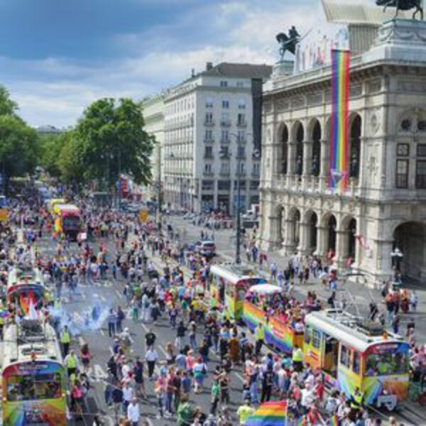 Флажки появились на венских трамваях ещё 27 мая, такие же флаги и плакаты можно увидеть и в многочисленных поездах. Кроме того, пассажиры могут купить особые проездные с радужным дизайном на 24, 48, 72 часа и на неделю.