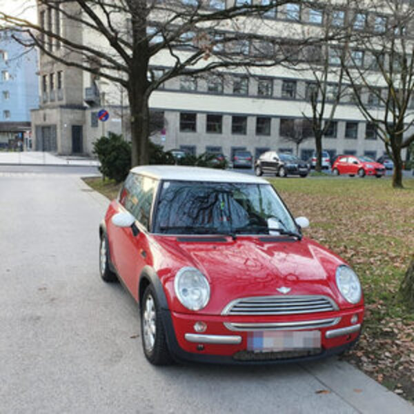 У этого водителя явно не было желания искать парковочное место. Он просто взял и припарковал свой Мини-Купер посреди тротуара в Фольксгартене.