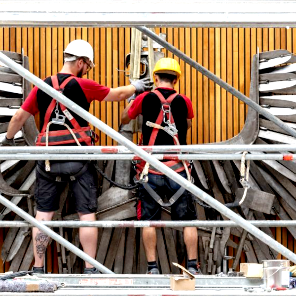 Восстановленный геральдический орел снова установлен