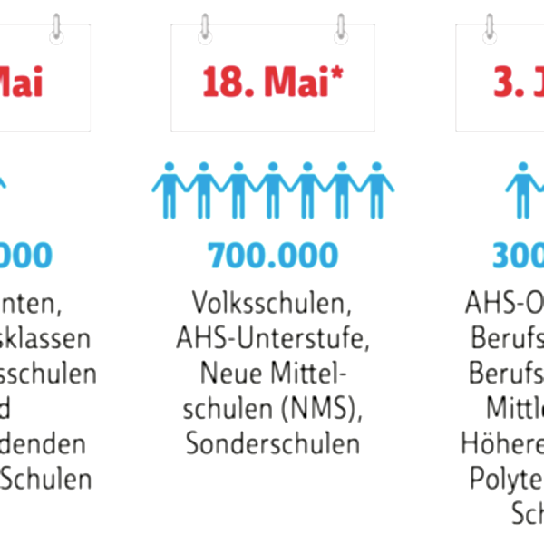 С 4 мая школьная работа в Австрии постепенно возобновляется через семь с половиной недель. Есть некоторые особенности, по крайней мере, до конца учебного года.