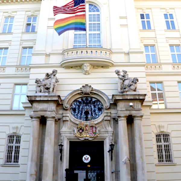 Своим распоряжением министерство иностранных дел США запретило своим представительствам вывешивать радужные флаги в поддержку ЛГБТИ-движения. Вена нарушила запрет.